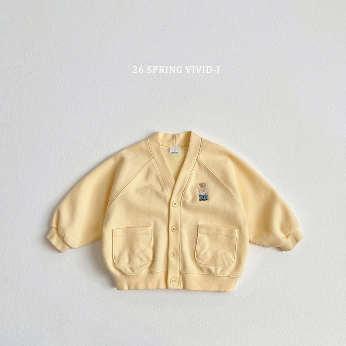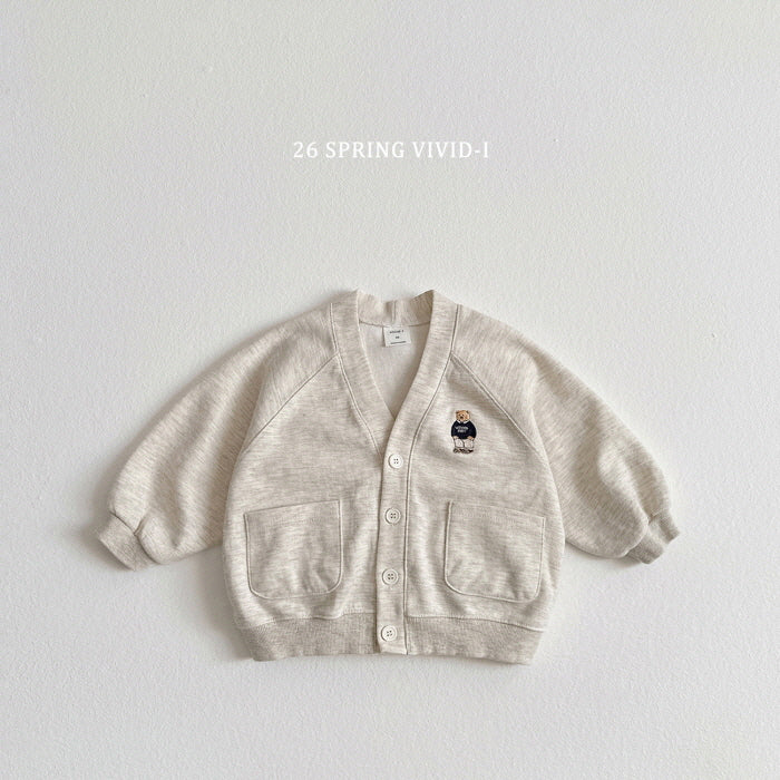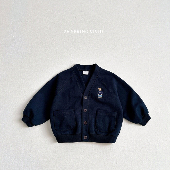 [KIDS] Bear Embroidered Pocket Cardigan