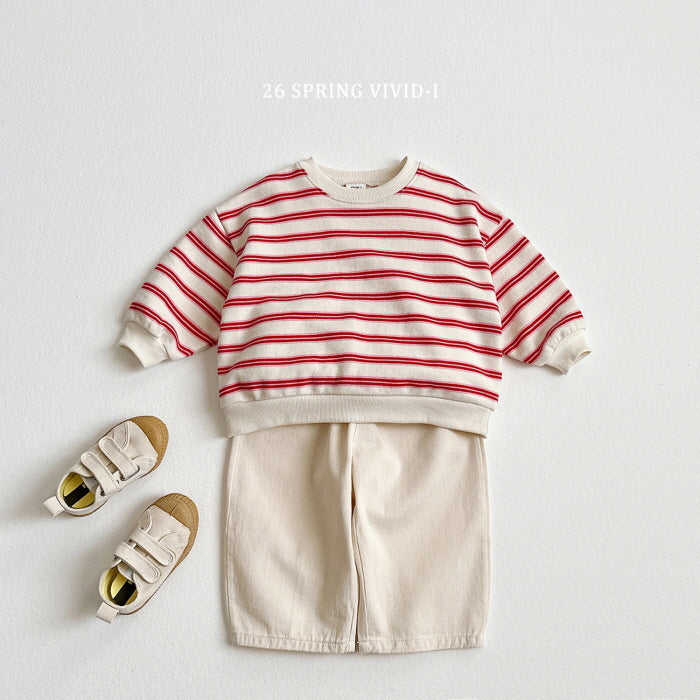 [KIDS] Wide Stripe Embroidered Bear Sweatshirt