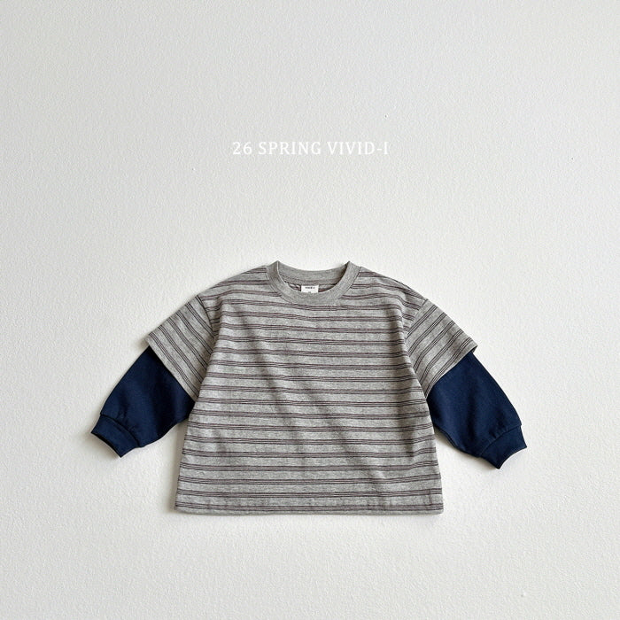 [KIDS] Combination Striped Layered Tee